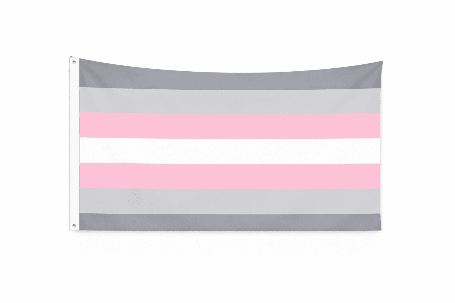 De demigirl vlag staat voor een genderidentiteit waarbij iemand zich deels vrouw voelt en deels buiten die categorie. De kleuren grijs, wit en roze symboliseren deze combinatie van identiteit en expressie. De vlag staat voor zichtbaarheid, erkenning en acceptatie binnen de LGBTQ+ community.