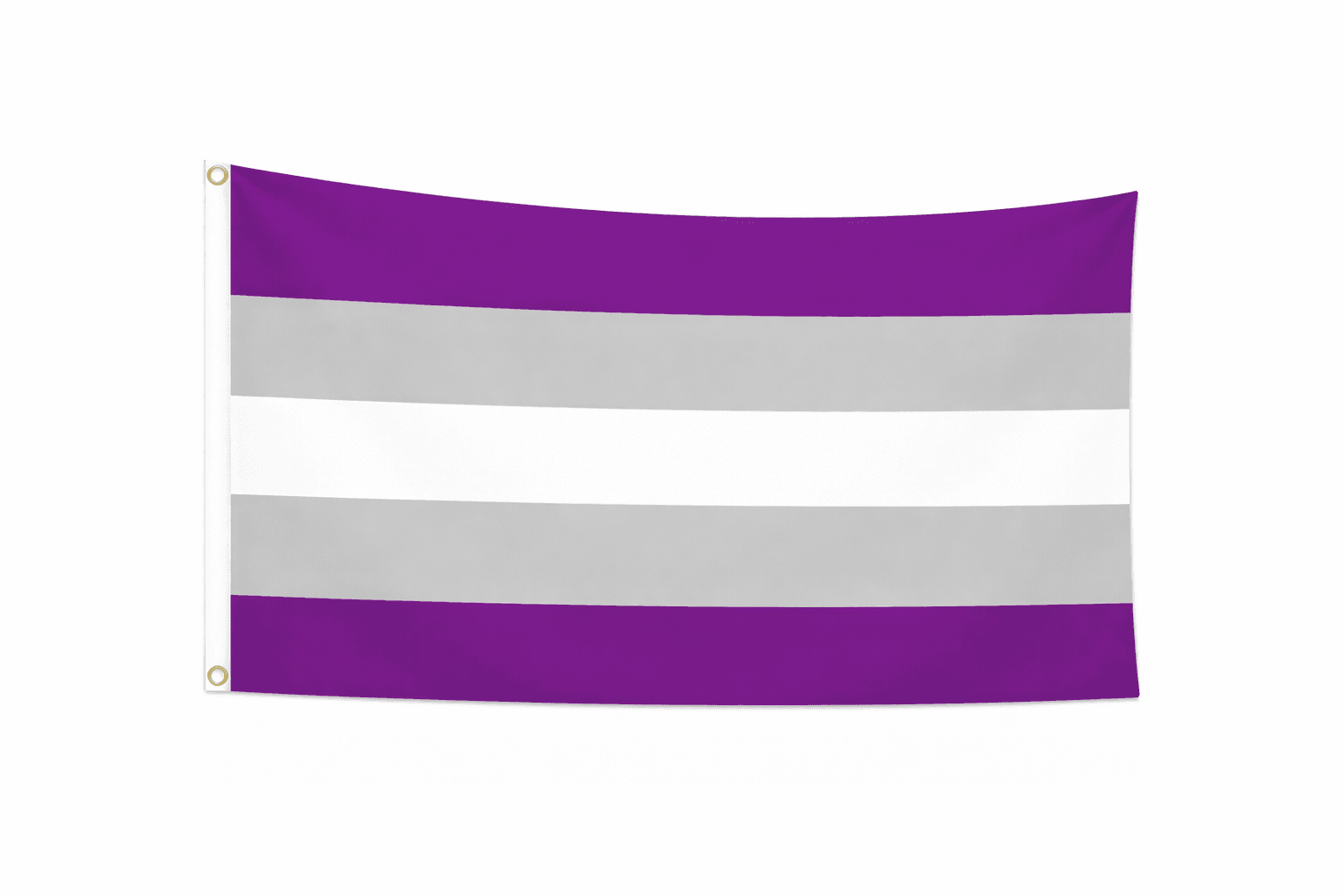 Deze vlag staat voor mensen die zich bevinden tussen asexualiteit en seksualiteit in. De kleuren paars, grijs en wit geven deze pride vlag een rustige en herkenbare uitstraling. Of je nu naar een evenement gaat of jouw kamer wilt decoreren, deze vlag laat duidelijk zien waar jij voor staat.