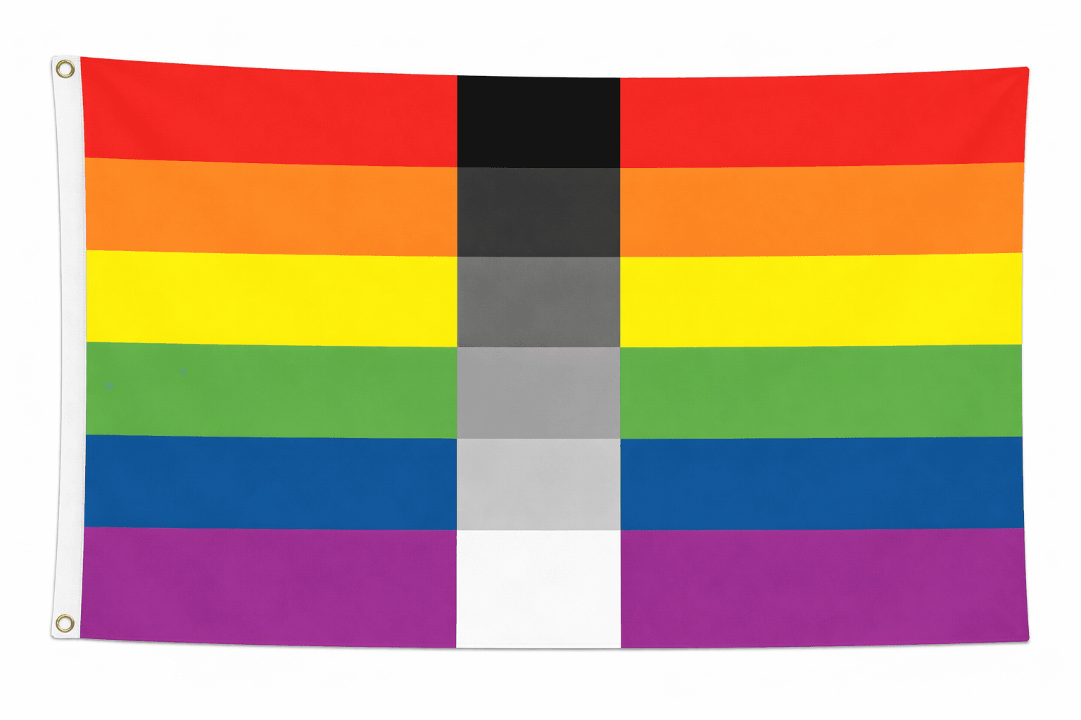 Deze vlag staat voor mensen die zich voornamelijk aangetrokken voelen tot hetzelfde geslacht, maar ook openstaan voor andere vormen van aantrekkingskracht. De combinatie van de regenboogkleuren met een neutrale verticale balk zorgt voor een krachtig en herkenbaar design. Of je nu naar een Pride event gaat of jouw ruimte wilt personaliseren, met deze vlag maak je een duidelijk statement.