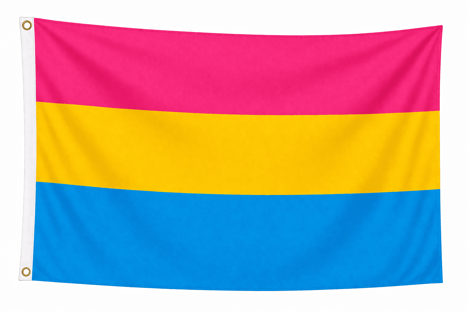 Panseksualiteit betekent dat iemand zich aangetrokken voelt tot mensen ongeacht hun gender. Deze vlag met roze, geel en blauw staat symbool voor aantrekkingskracht tot vrouwen, non-binaire personen en mannen.