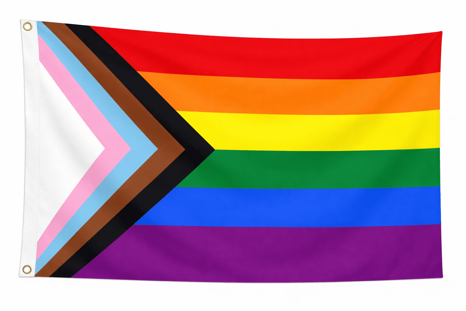 De progress pride vlag is een uitbreiding op de klassieke regenboogvlag. De extra kleuren staan voor bredere zichtbaarheid, inclusie en erkenning binnen de community, terwijl het geheel symbool staat voor vooruitgang en verbondenheid.