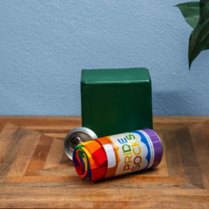 In plaats van een standaard verpakking komen deze regenboogsokken in een herbruikbaar metalen bierblik. Dat maakt het niet alleen een leuk en origineel cadeautje, maar ook een blijvend item dat je later kunt gebruiken voor opslag of decoratie. Het blikje is een echte eyecatcher op een bureau, plank of tafeltje en past perfect bij een kleurrijke, Pride-geïnspireerde stijl.